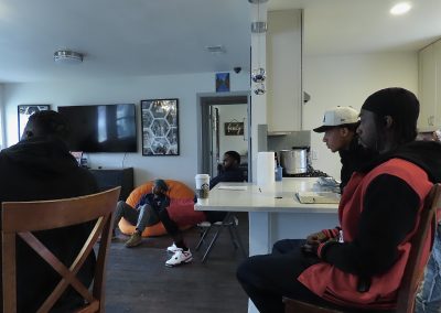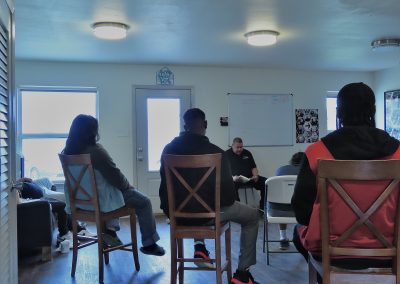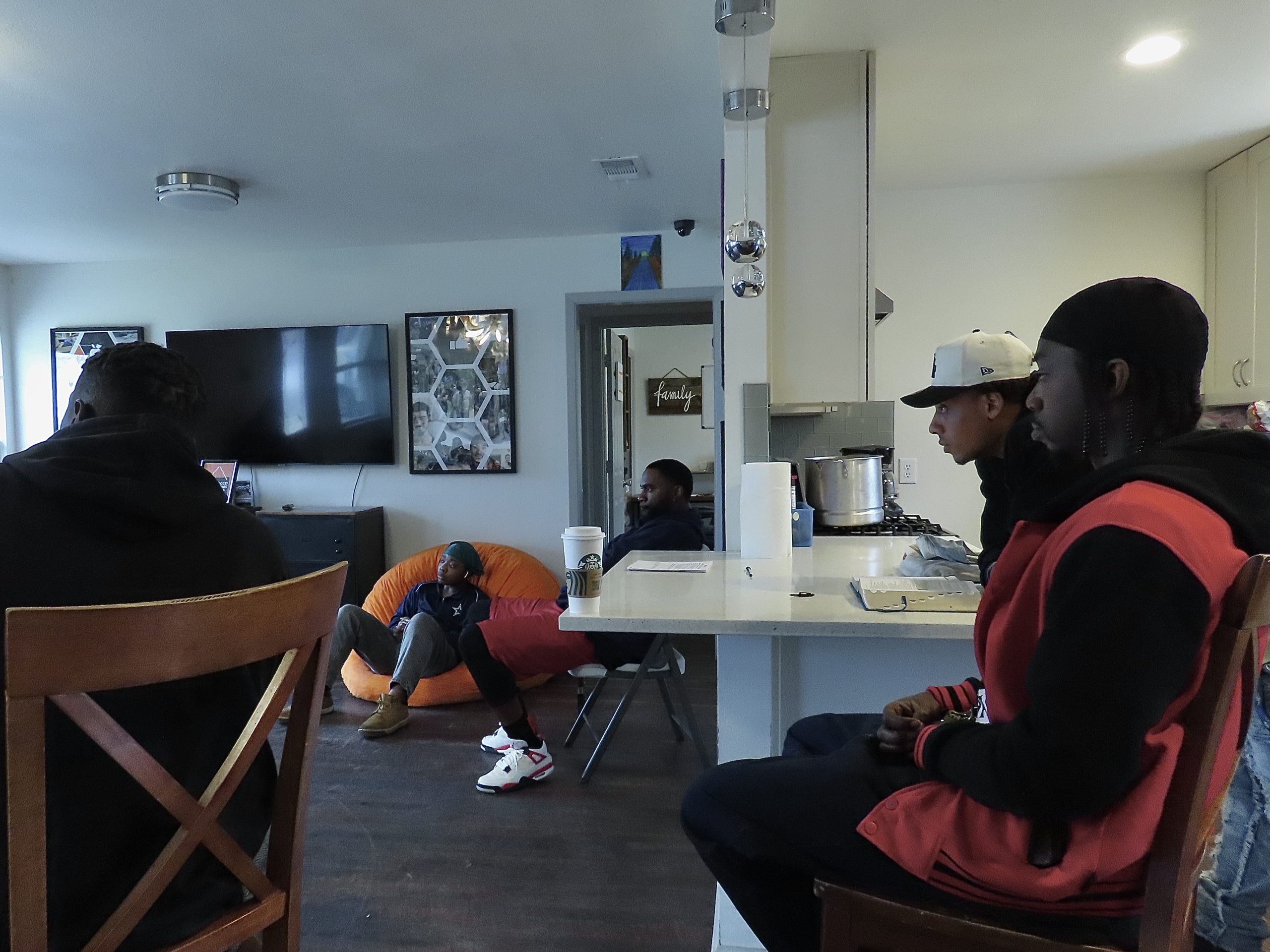 Gathered in the living room of the Powell House, participants and staff lean in as Abel leads a heartfelt Bible study, filling the space with reflection and connection on Wednesday, Feb. 27, 2025. Located in Austin’s Georgian Acres neighborhood, the Powell House serves as a safe haven for many of those present—offering shelter, support, and a sense of belonging.