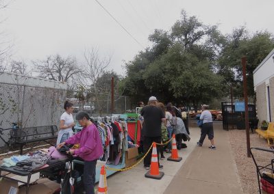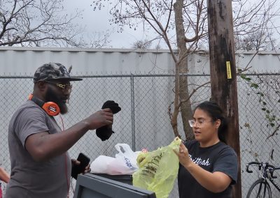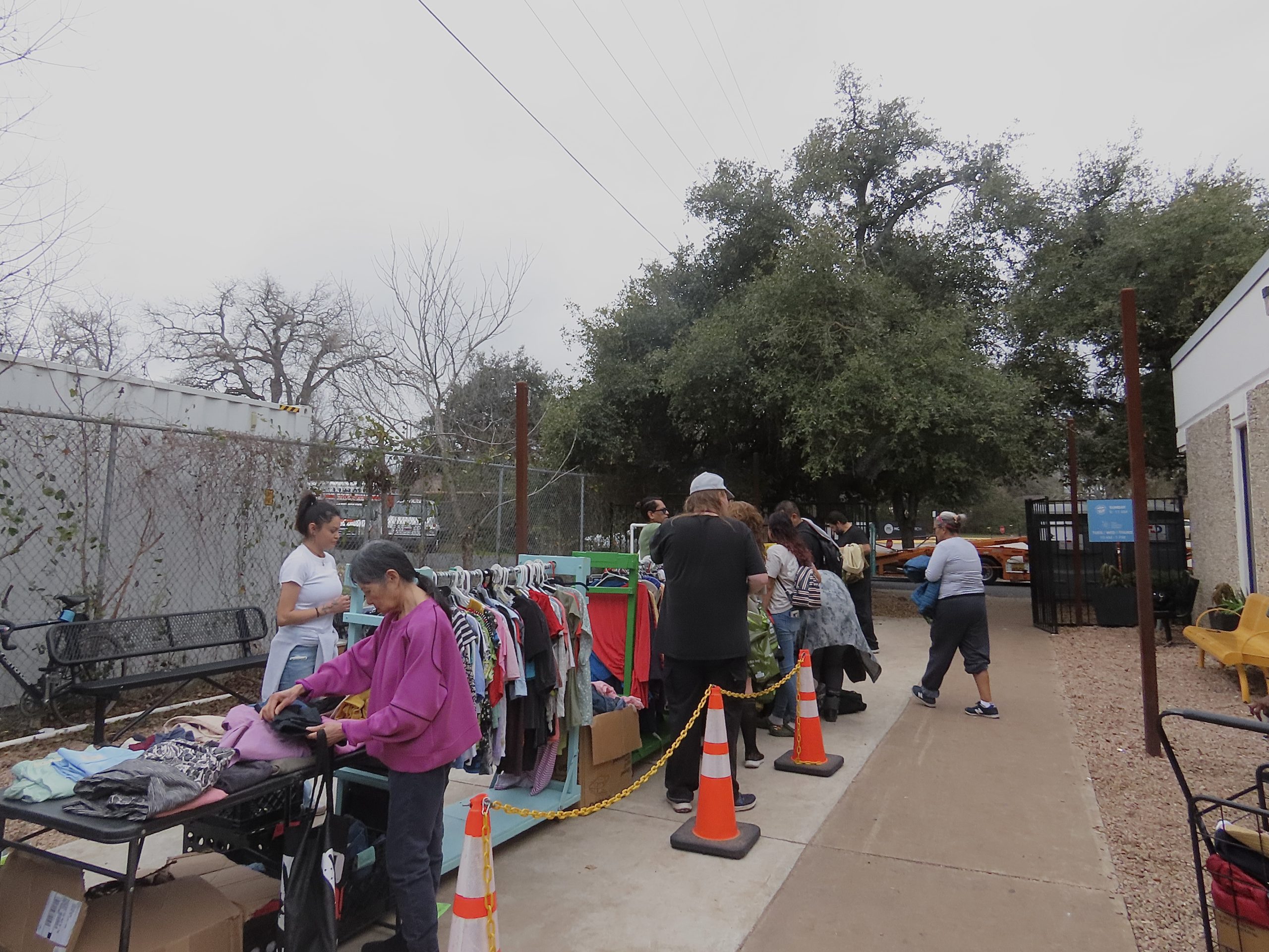 On Wednesday, Feb. 5, 2025, Adrian Bedford fills a bag with clothes offered by Thriftish, a nonprofit providing free apparel to those in need at the Charlie Center. A lifelong Austin resident, Adrian has been homeless for the past three years. “These people really come out here every day to do the Lord’s work,” Adrian says. “I don’t know what we’d do without them.”