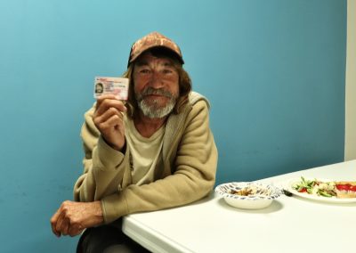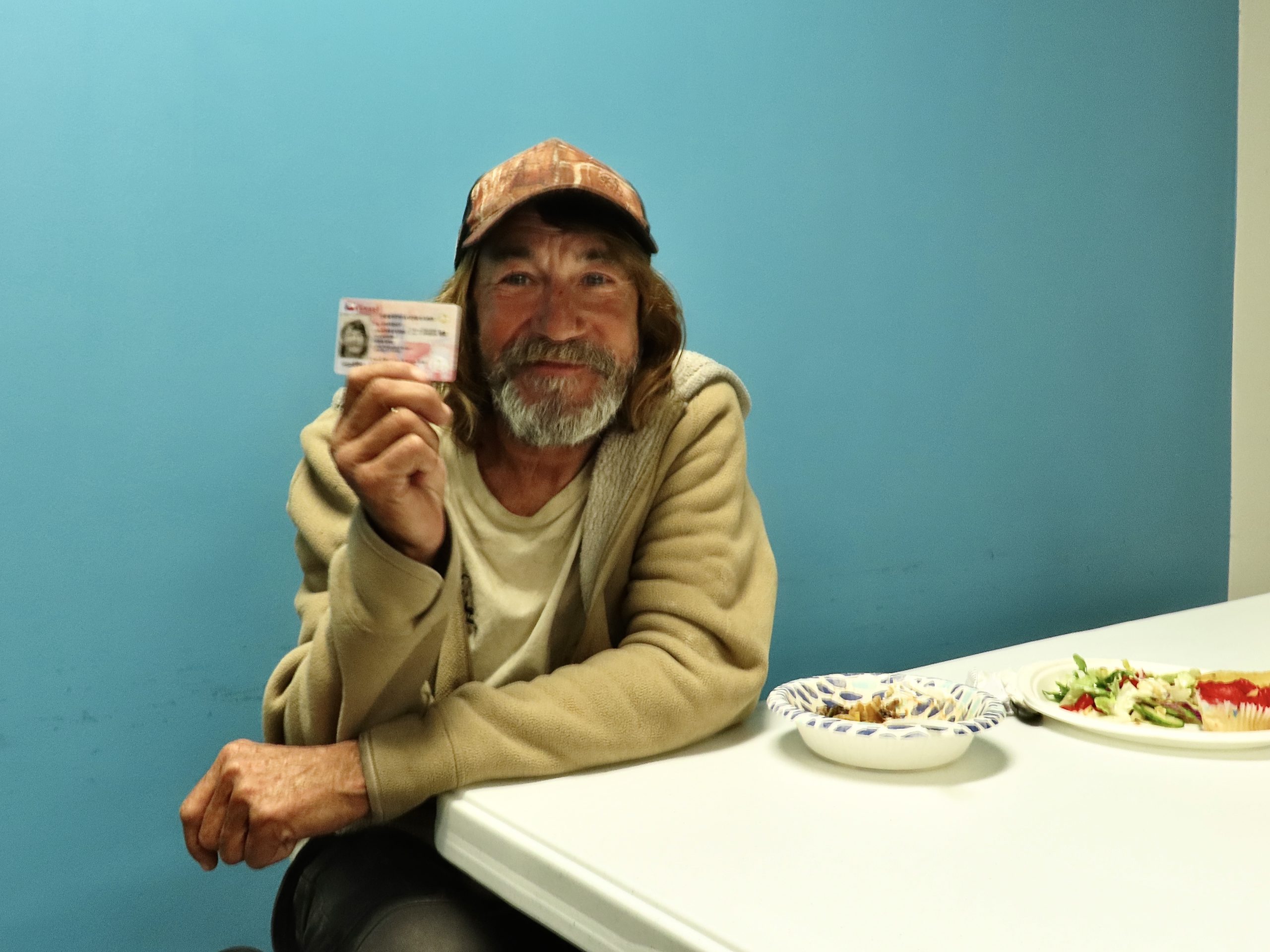 On Wednesday, Feb. 5, 2025, Dixie Clanton proudly shows me his new ID card, a crucial step toward rebuilding his life, provided by the Charlie Center. Currently homeless, Dixie once worked on the oil rigs in his hometown of Galveston, Texas, until a life-changing back injury forced him to stop. “This ID means I’m not invisible anymore,” Dixie says, his voice filled with both relief and hope. “It’s the first step toward getting back to who I was before everything changed.”