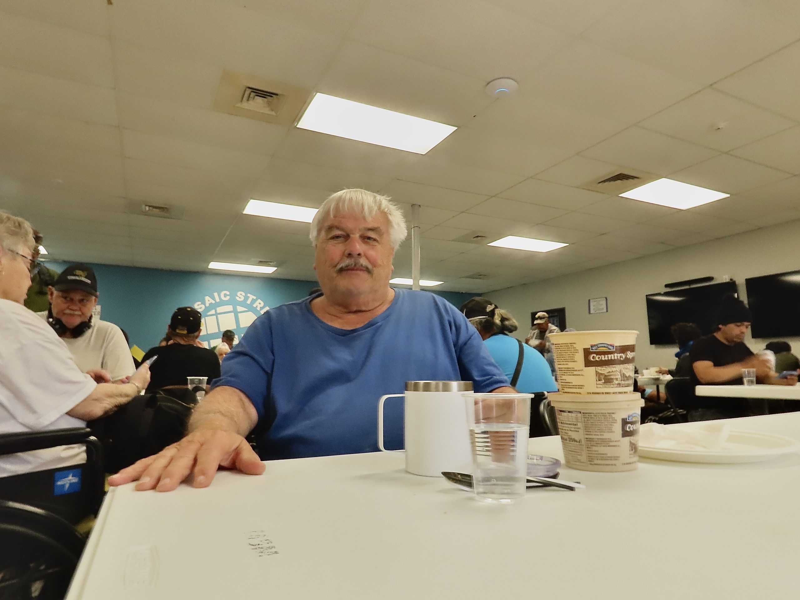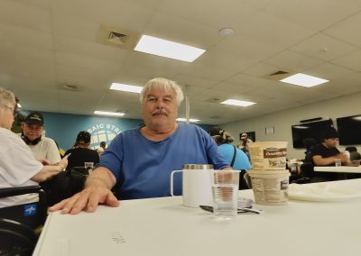 On Wednesday, Feb. 5, 2025, Robert Willis sips his coffee, quietly waiting to receive his bus pass at the Charlie Center. Originally from Elkhart, Indiana, Robert moved to Austin in 2018 in search of work, but now finds himself navigating the challenges of homelessness.