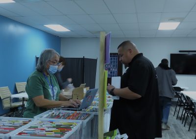 On Wednesday, Feb. 27, 2025, Abel Lopez carefully collects mail for a Jail to Jobs participant at the Charlie Center in Austin, Texas. While the Charlie Center primarily serves the homeless community, it also plays a vital role in supporting recently released individuals, like those served by Jail to Jobs, by providing crucial services that help them reintegrate into society. “Nobody thinks about how people who haven’t got housing yet will receive their mail,” Abel says. “How are you supposed to pay your bills or get your ID if you don’t have a mailing address?”