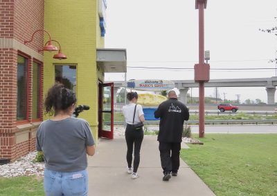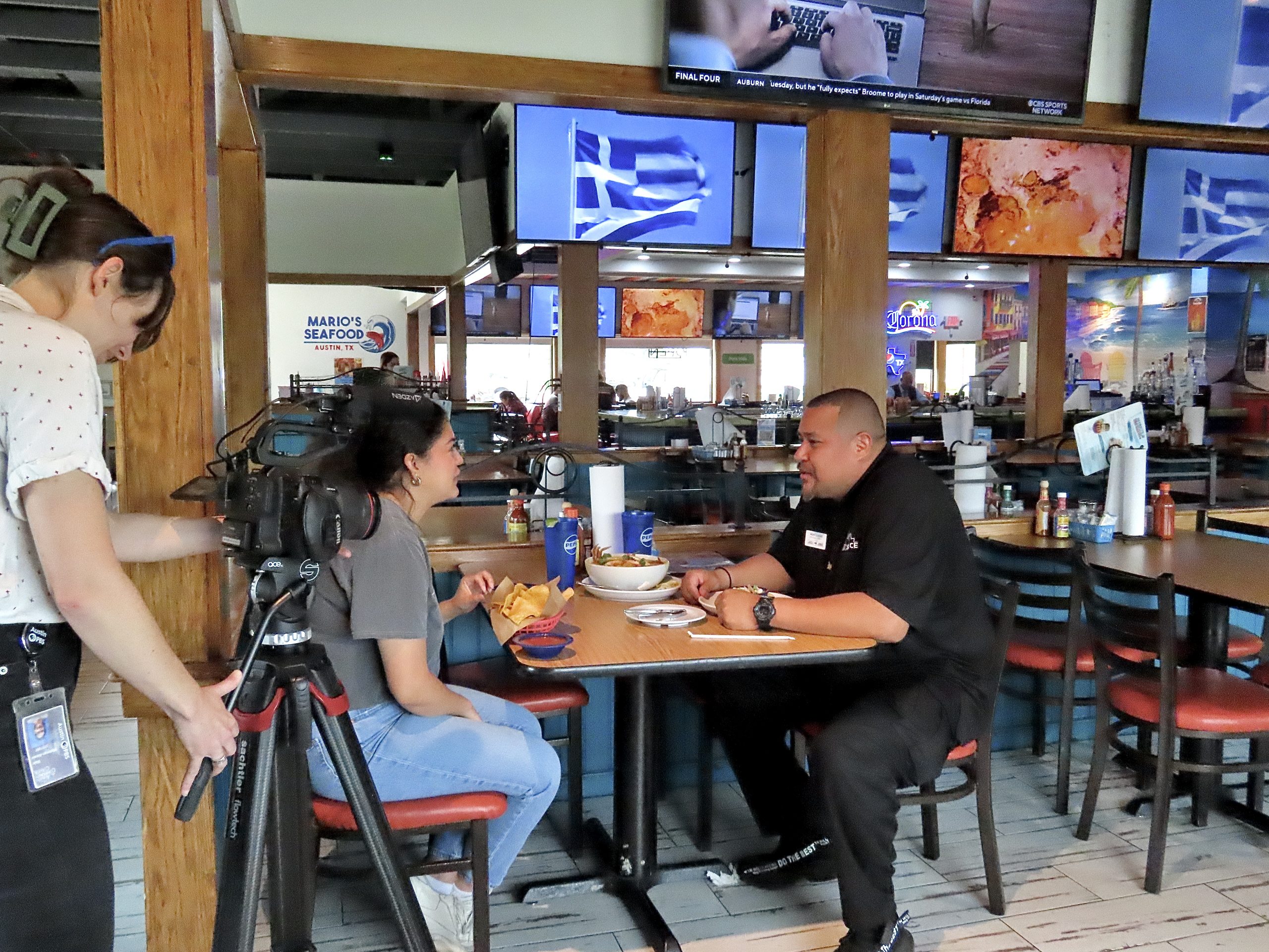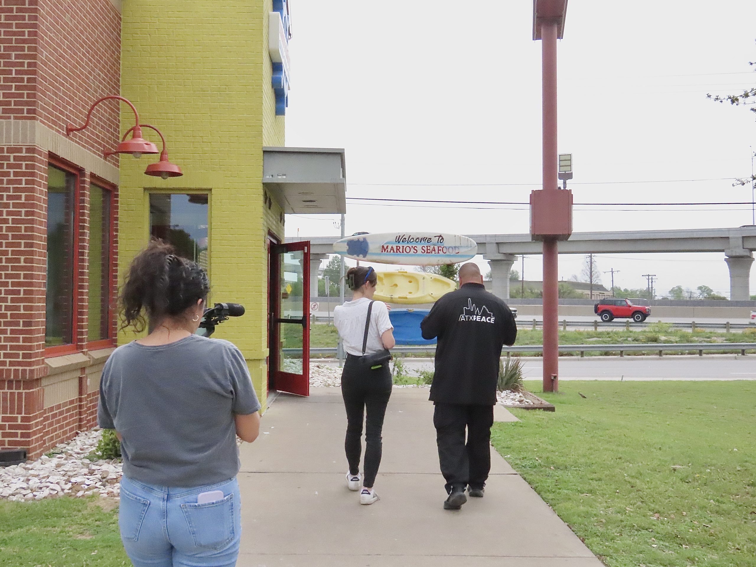 On Wednesday, April 2, 2025, Jackie Ibarra and Blair Waltman-Alexin film as Abel Lopez proudly introduces them to Mario’s Seafood—his favorite spot in the heart of Rundberg. As Blair and Abel step through the doors, Jackie captures the moment on camera, the lens catching Abel’s ATX Peace shirt, representing the Community Violence Intervention (CVI) program of Jail to Jobs. “This place isn’t just about good food,” Abel says. “It’s part of my story—it’s where I’ve felt seen, welcomed, and rooted.”