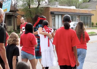 Leading the group toward Pan Am Hillside, the two female march leaders share an embrace—an expression of solidarity, strength, and sisterhood at the heart of the movement. Their connection mirrors the unity behind the march itself.